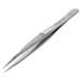 AC - Strong, short, heavy blade tweezers, serrated handle for firm grip. 4-3/8" OAL. Stainless steel- Anti-magnetic. Resists rust, corrosives, and acids, including hydrochloric acid. Excellent overall quality.